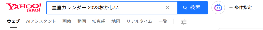 皇室カレンダーを検索すると「皇室カレンダー 2023おかしい」というキーワードが出てきます。